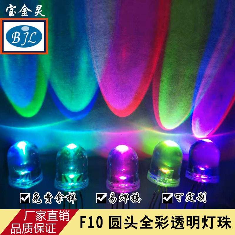F10全彩透明灯珠 led 发光二极管 全彩透明雾状共阴共阳 四脚直插