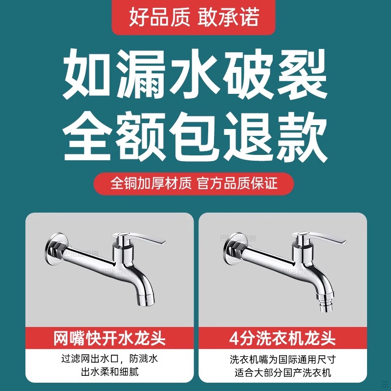 全铜阳台加长水龙头单冷家用304不锈钢入墙式拖把池专用4分洗衣机