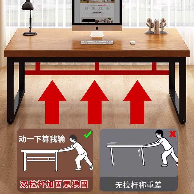 实木书桌简约现代家用办公长条电脑桌台式铁艺学习桌子双人工作台
