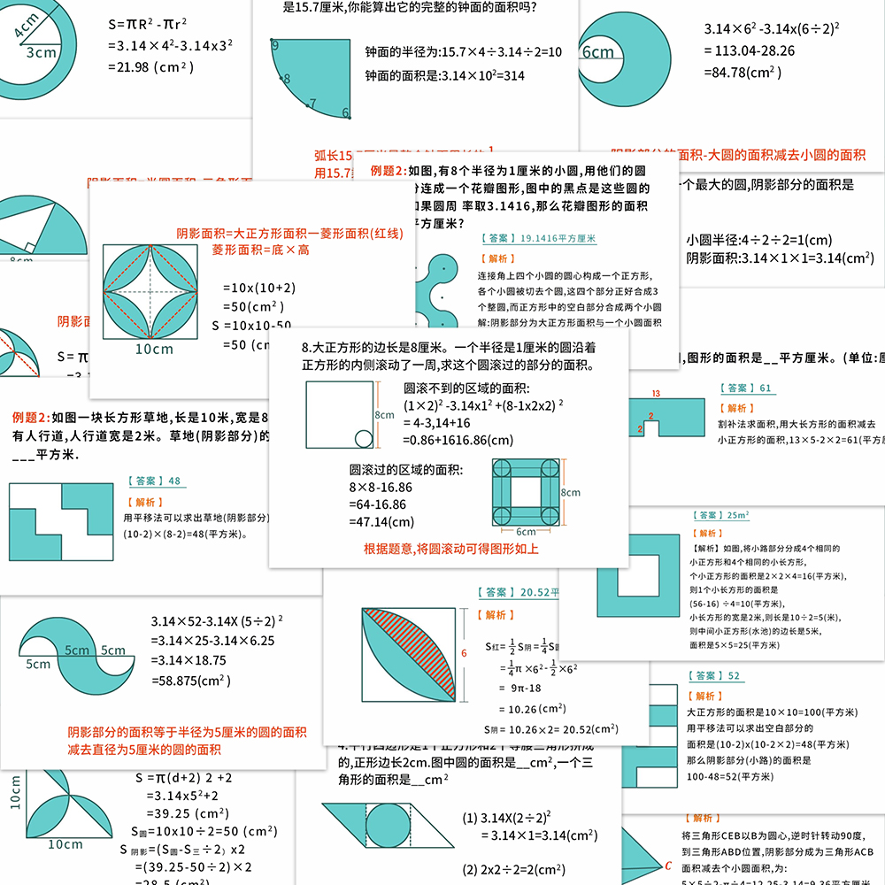96张数学面积公式贴纸初高中考试知识点复习笔记本iPad贴画防水