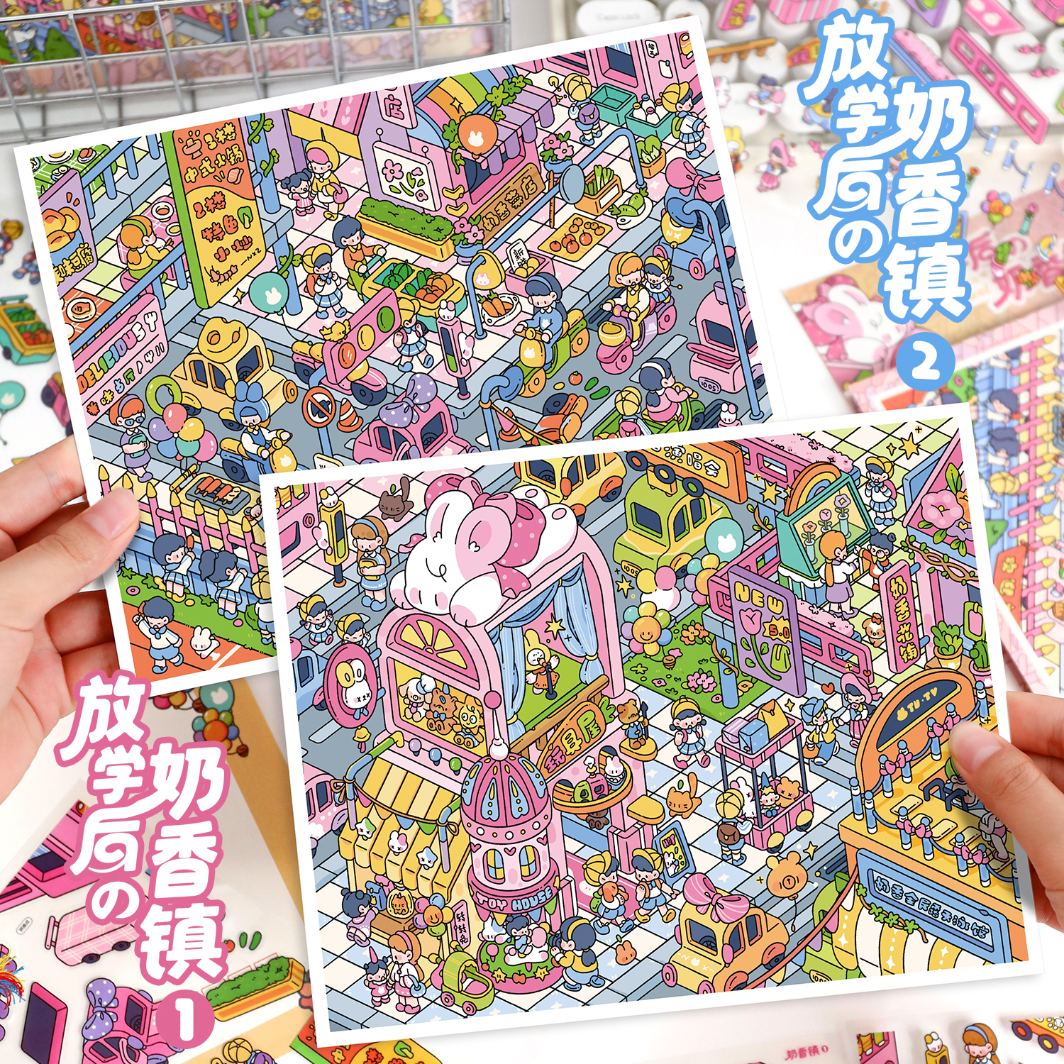 放学后的奶香镇系列造景贴纸折叠款艺蓝96.0超大版微缩场景大号可爱3d立体小屋贴画手帐账diy手工玩具女孩