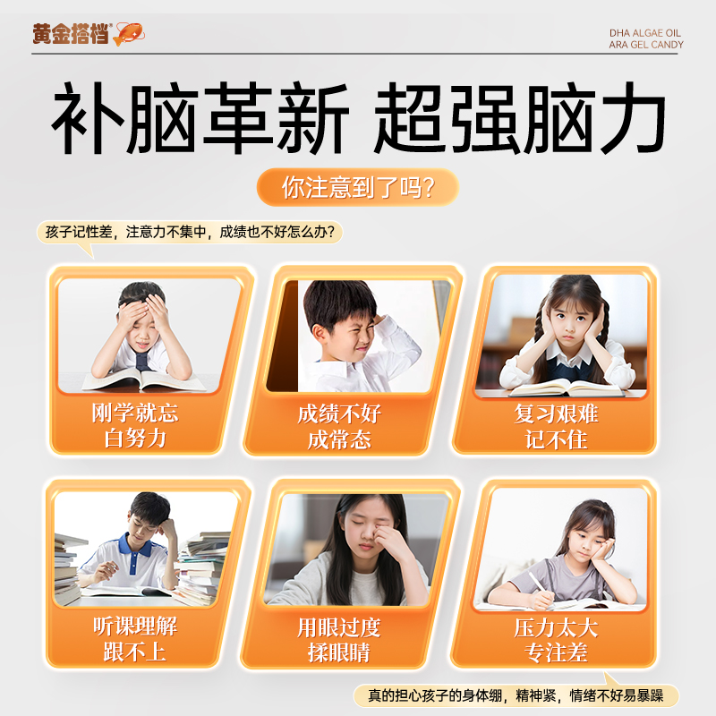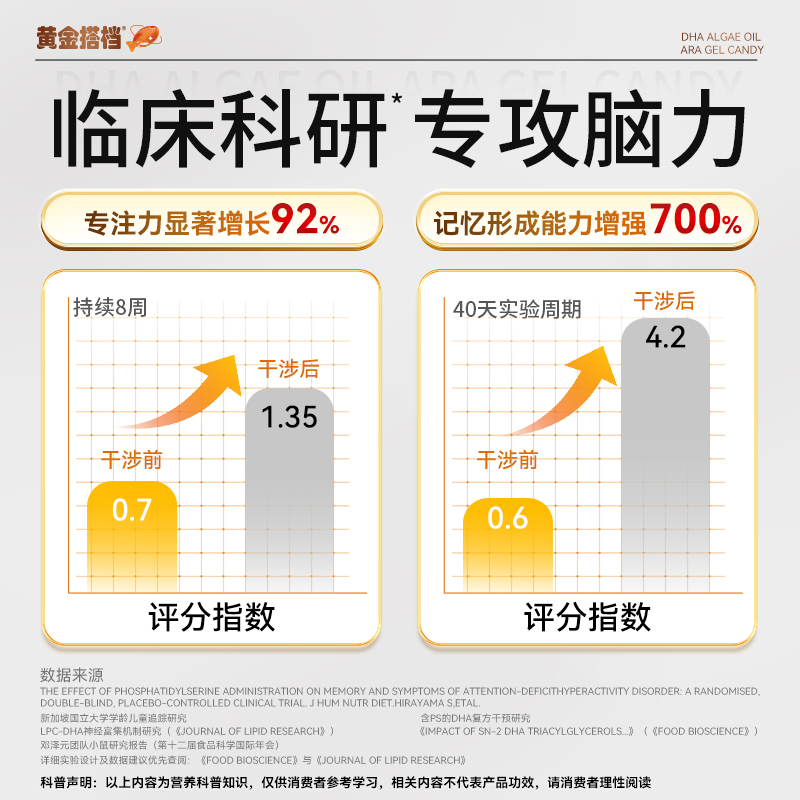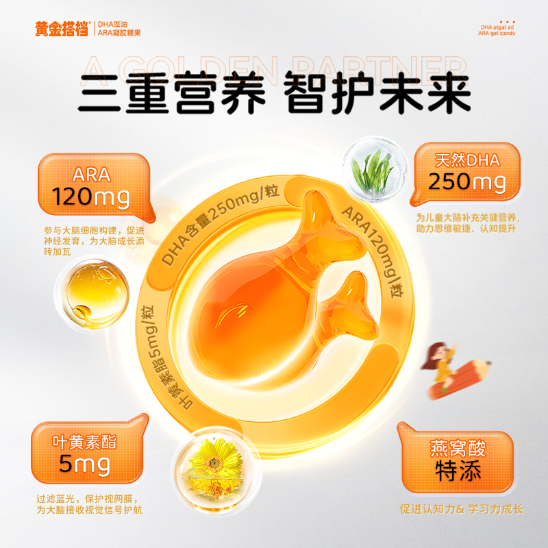 黄金搭档DHA藻油软胶囊ARA官方旗舰店正品专用提升学生儿童孩子