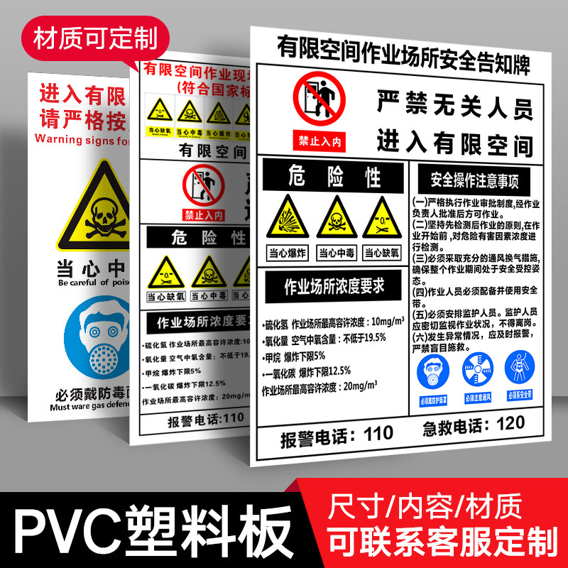 有限空间安全告知牌作业注意事项警示牌职业危害告知卡单独密闭空