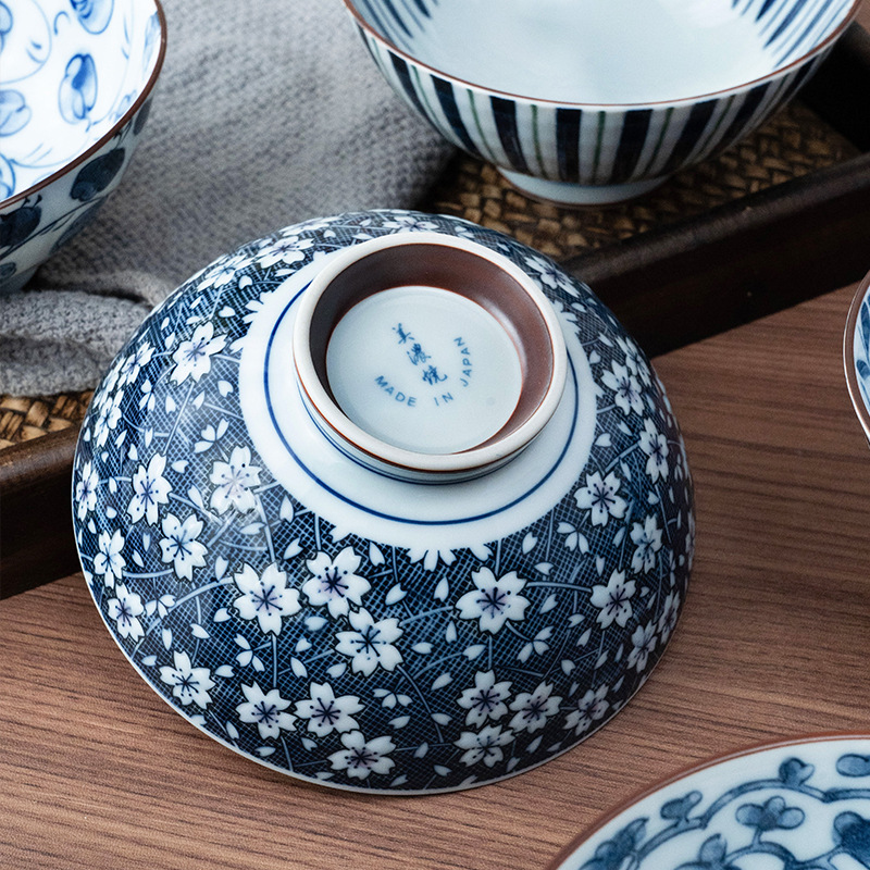 美烧陶餐用木日和古.5英米饭碗浓瓷具家盒式风经典复蓝绘5寸高脚