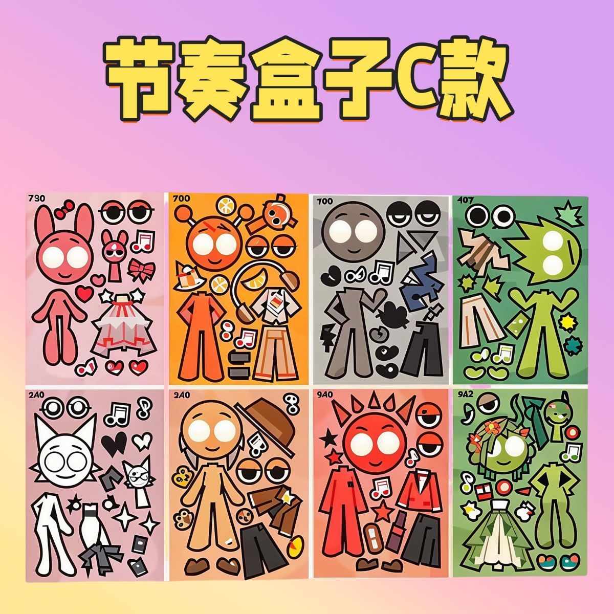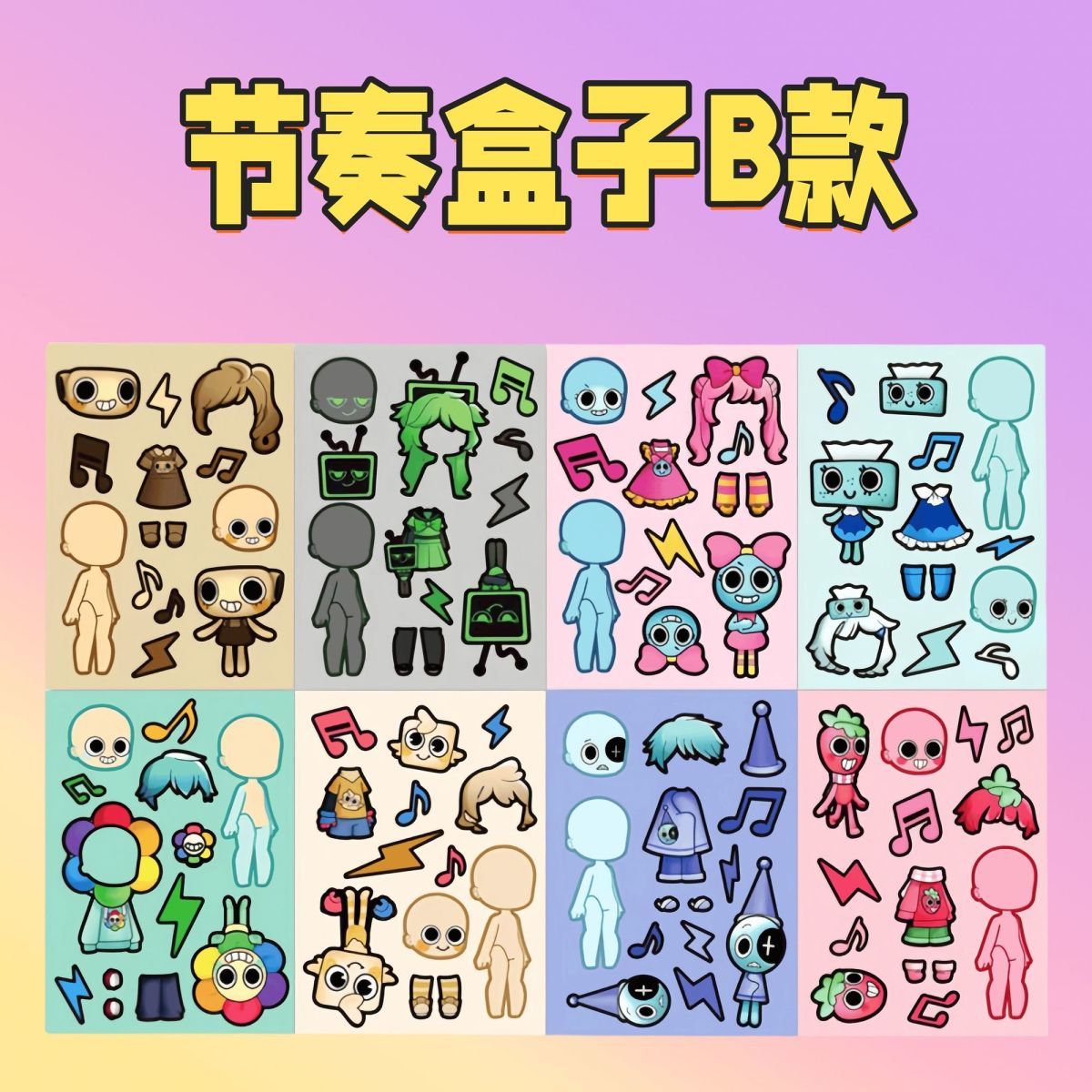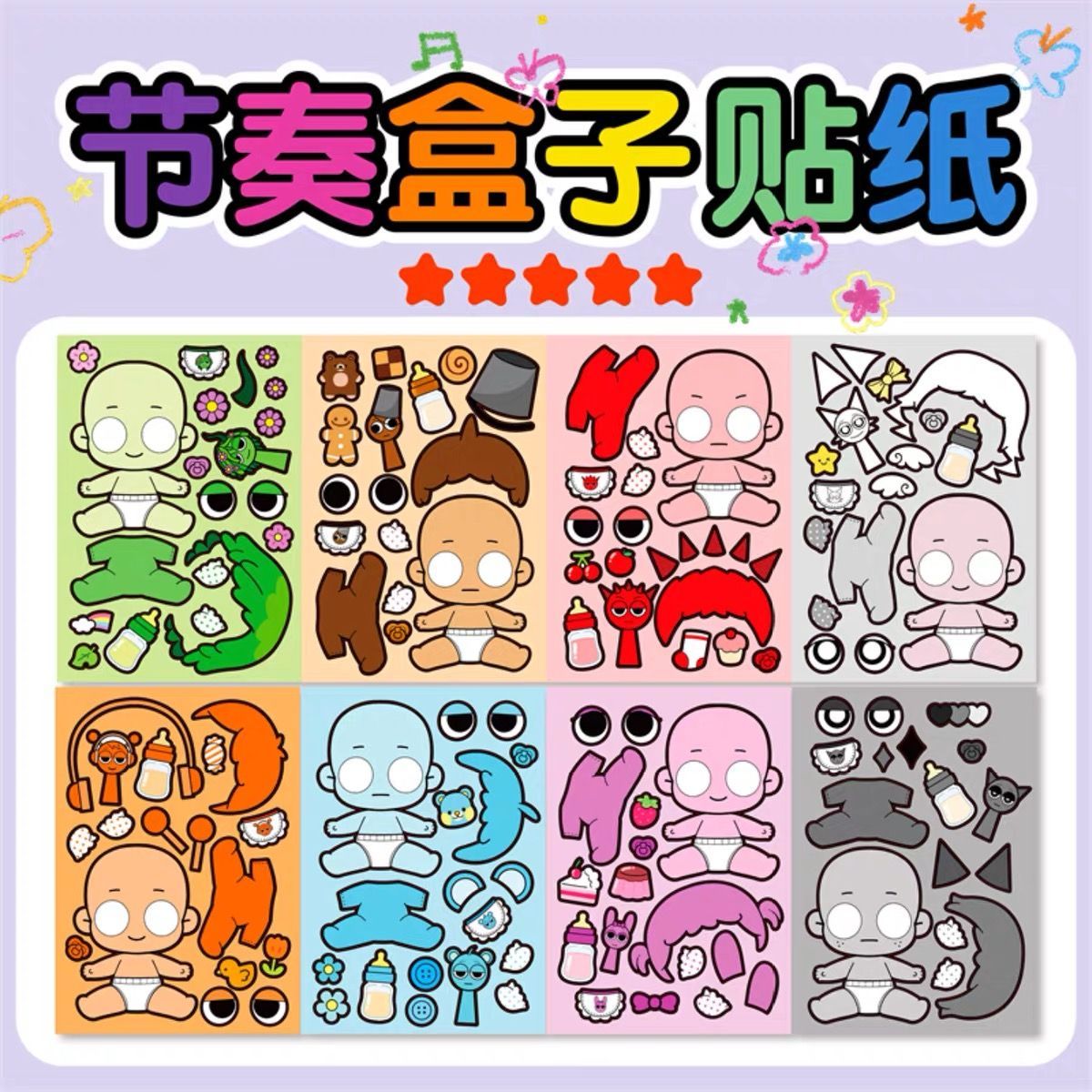 宝宝幼儿园节奏盒子贴纸人物换装免裁剪diy创意手工益智儿童玩具