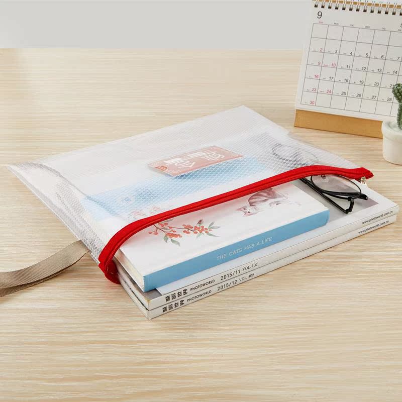 网格文件袋加厚透明网格拉链袋A4试卷收纳袋学生用考试文具袋防水笔袋办公用品批发公文档案袋资料袋包邮