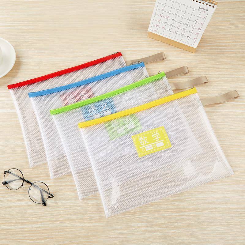 a4拉链袋文件袋学科袋办公学科分类收纳透明学生用加厚防水档案中小学生科目试卷收纳装作业文具网格补习袋