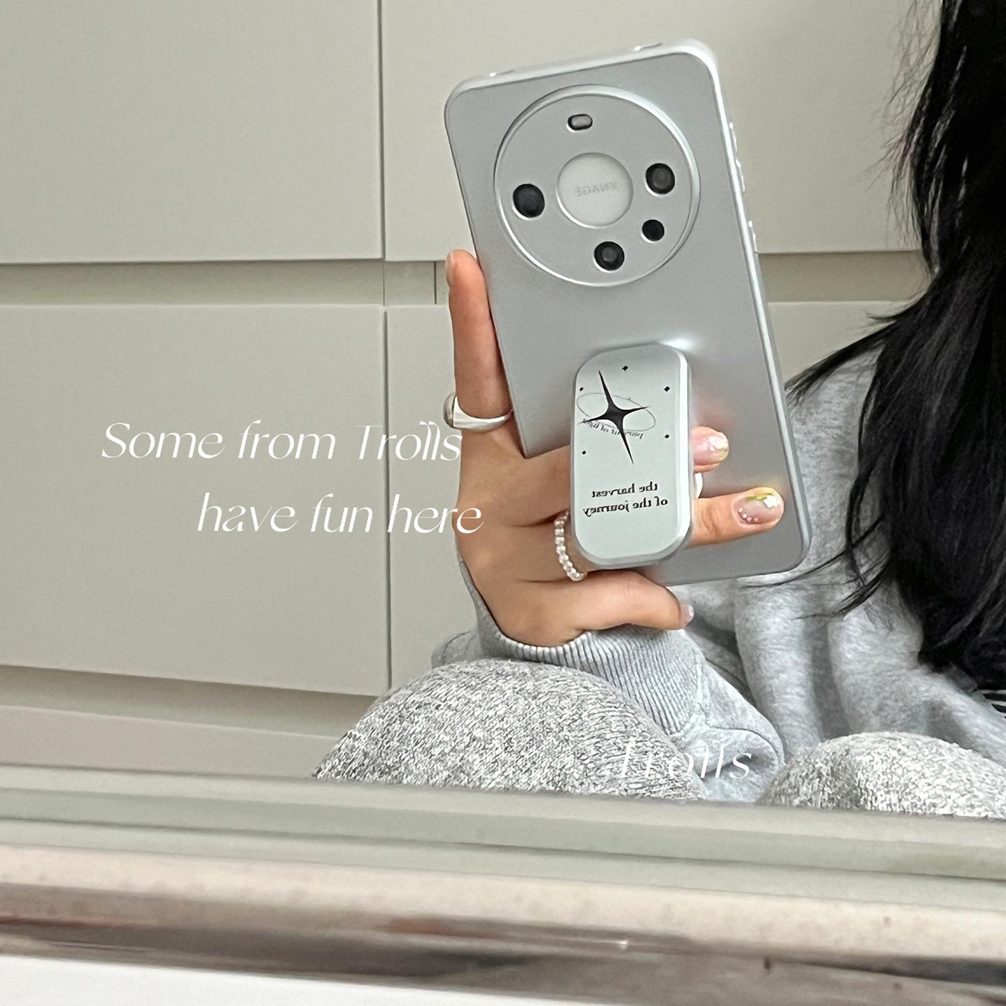 Trolls|星河穿越太空 淡淡的疏离感冷淡风ins磨砂哑光银色适用华为mate70Pro+iphone16/小米17推拉支架手机壳