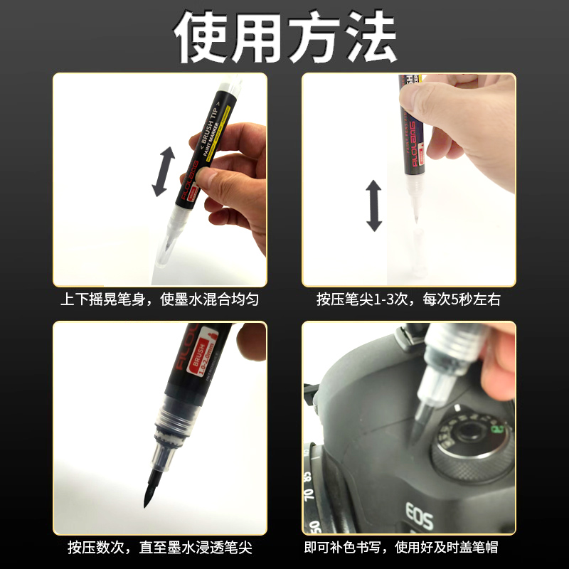 日式费洛朗哑光黑软头补漆笔防水不掉色耐高温标记笔磨砂黑五金塑料阳极修复消光补色笔哑白亚灰哑黑油漆笔
