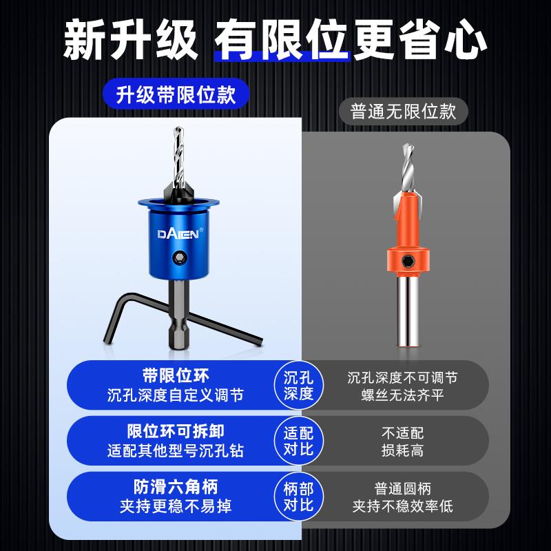 kt沉孔钻头限位器90度六角柄木工沉头成孔引孔麻花钻自攻螺丝二合
