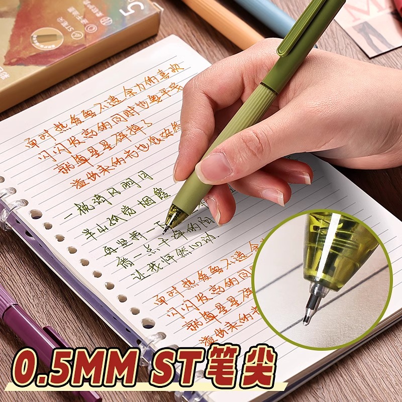 元宇宙刷题笔专用高颜值速干按动中性笔ST笔头黑笔初中学生专用按压式顺滑黑色笔芯水性签字笔碳素水笔圆珠笔