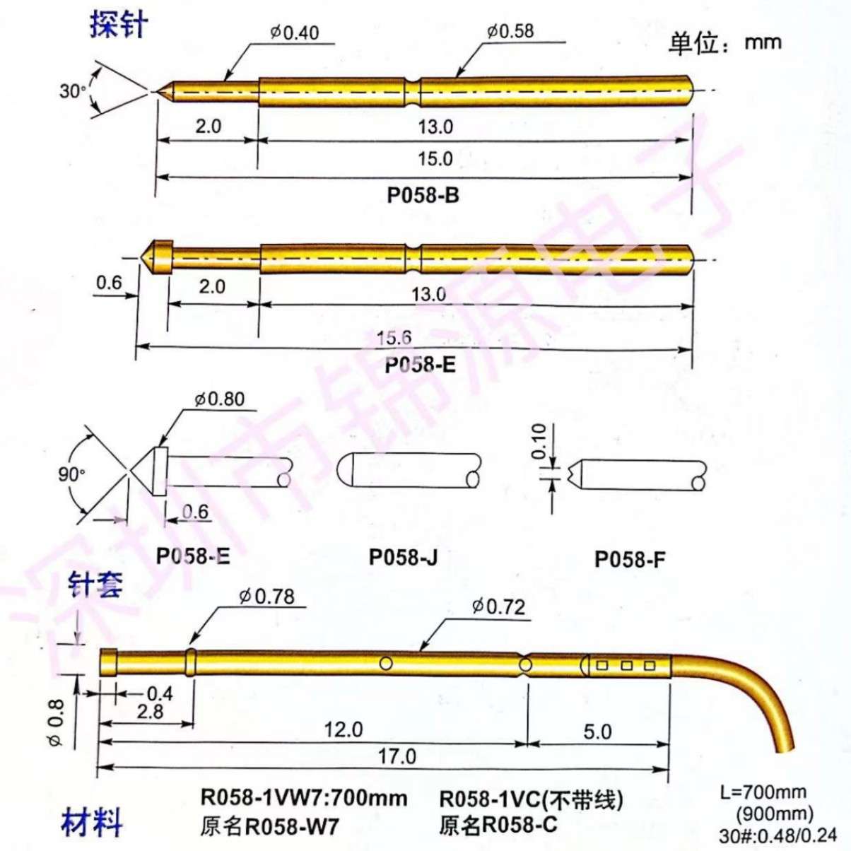 测试探针P058-00#探针R058套管线焊接铜线PCB光板测试针