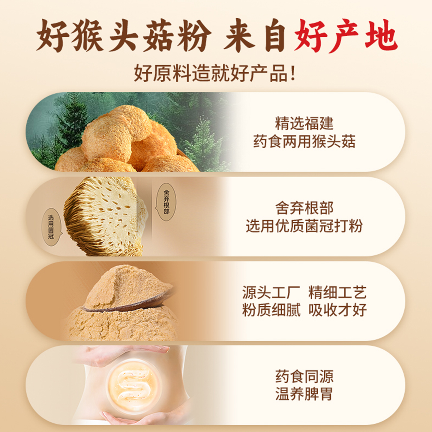 固德励健有机猴头菇粉呵护肠胃营养早餐代餐粉养生健康