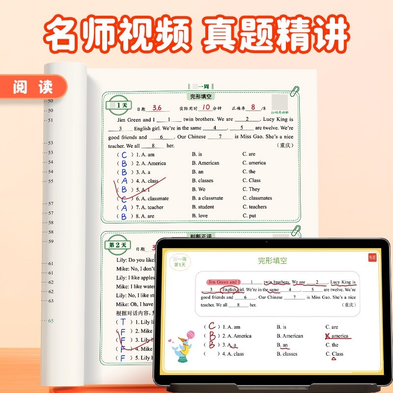 【易蓓】阅读理解专项训练听力练习每日一练三四五六年级磨耳朵阅读技巧天天练小升初英语考点提升训练听写句子单词词汇练习册·