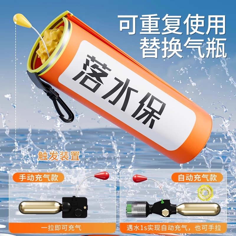 车载落水保紧急溺水救援装备带破窗器自动充气救生衣大浮力游泳圈