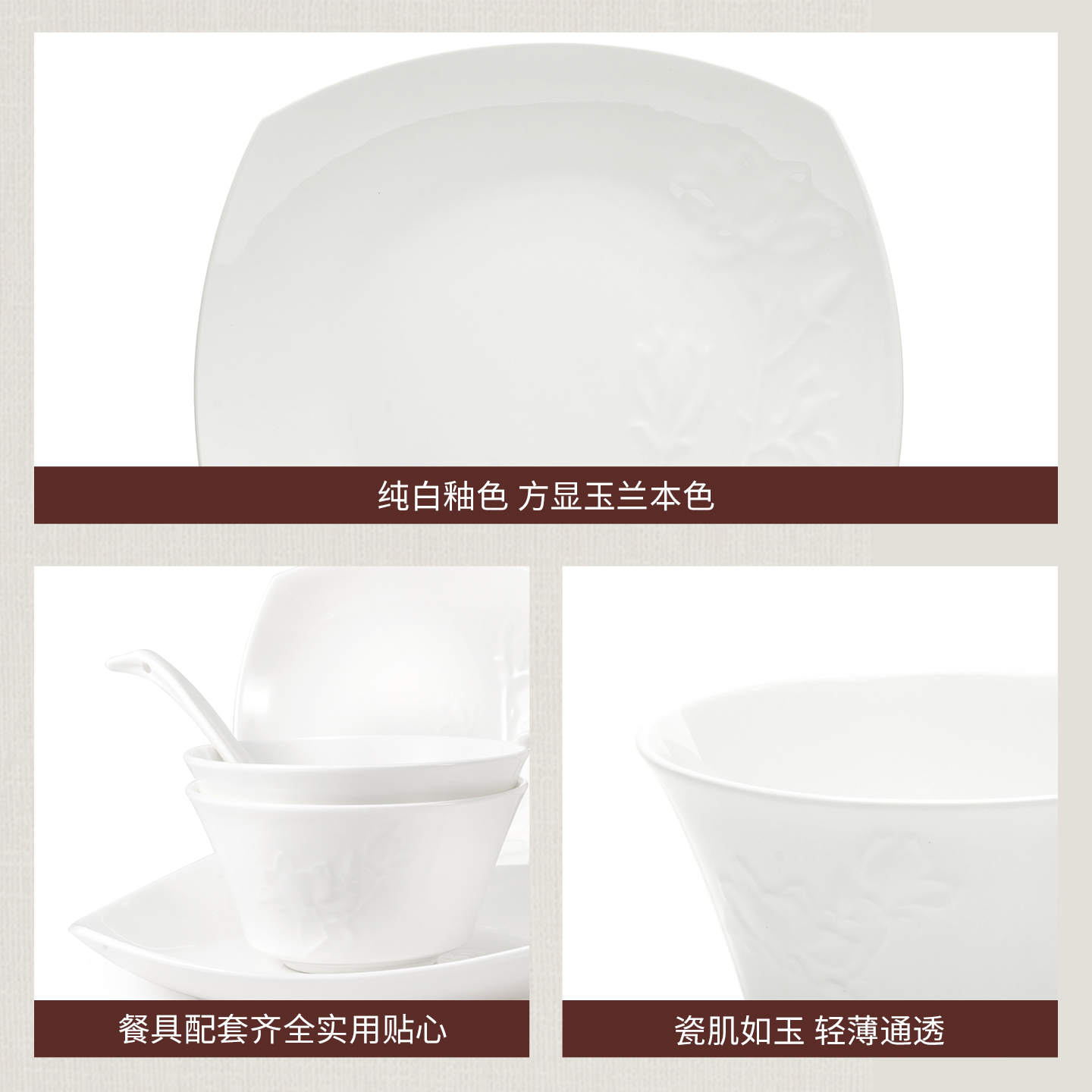 玛戈隆特骨瓷餐具玉兰本色散件碗盘家用中式创意汤碗盘子吃饭的碗