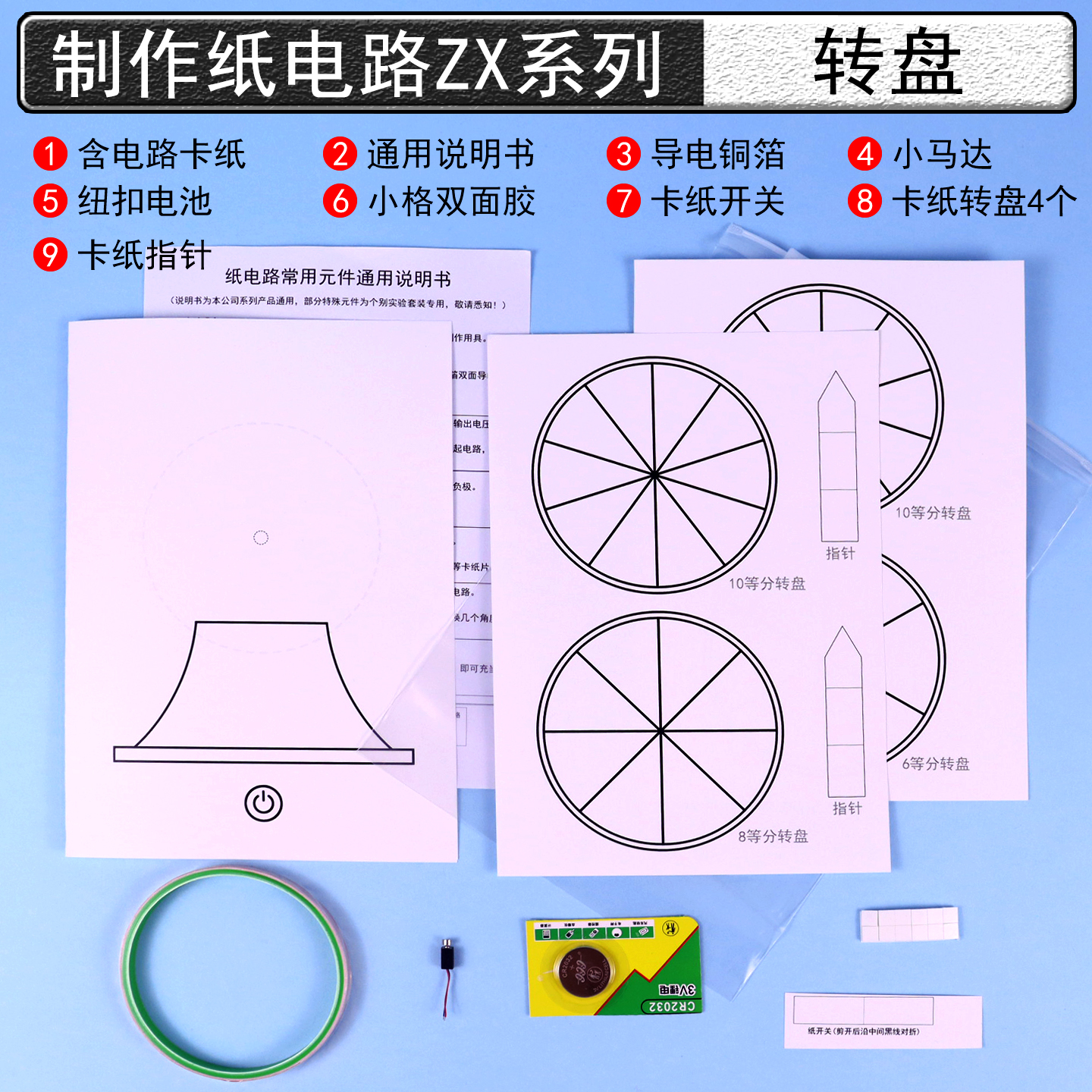 幸运转盘/纸电路制作材料包抽奖摸奖小学科学实验套装科技小发明儿童DIY电学器材纽扣电池小马达电动机STEAM