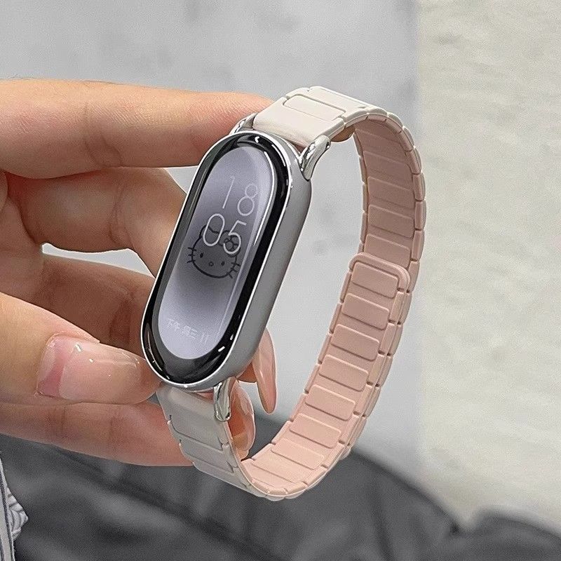 适用小米手环10/9/8表带3/4/5/6/7硅胶磁吸通用NFC版腕带八九十代替换手表带高级感小清新创意拼色男女款运动