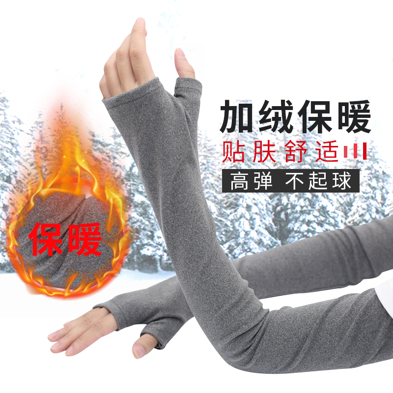 加绒保暖袖套女男防风手臂套加厚高弹性防寒胳膊护关节半指秋冬季