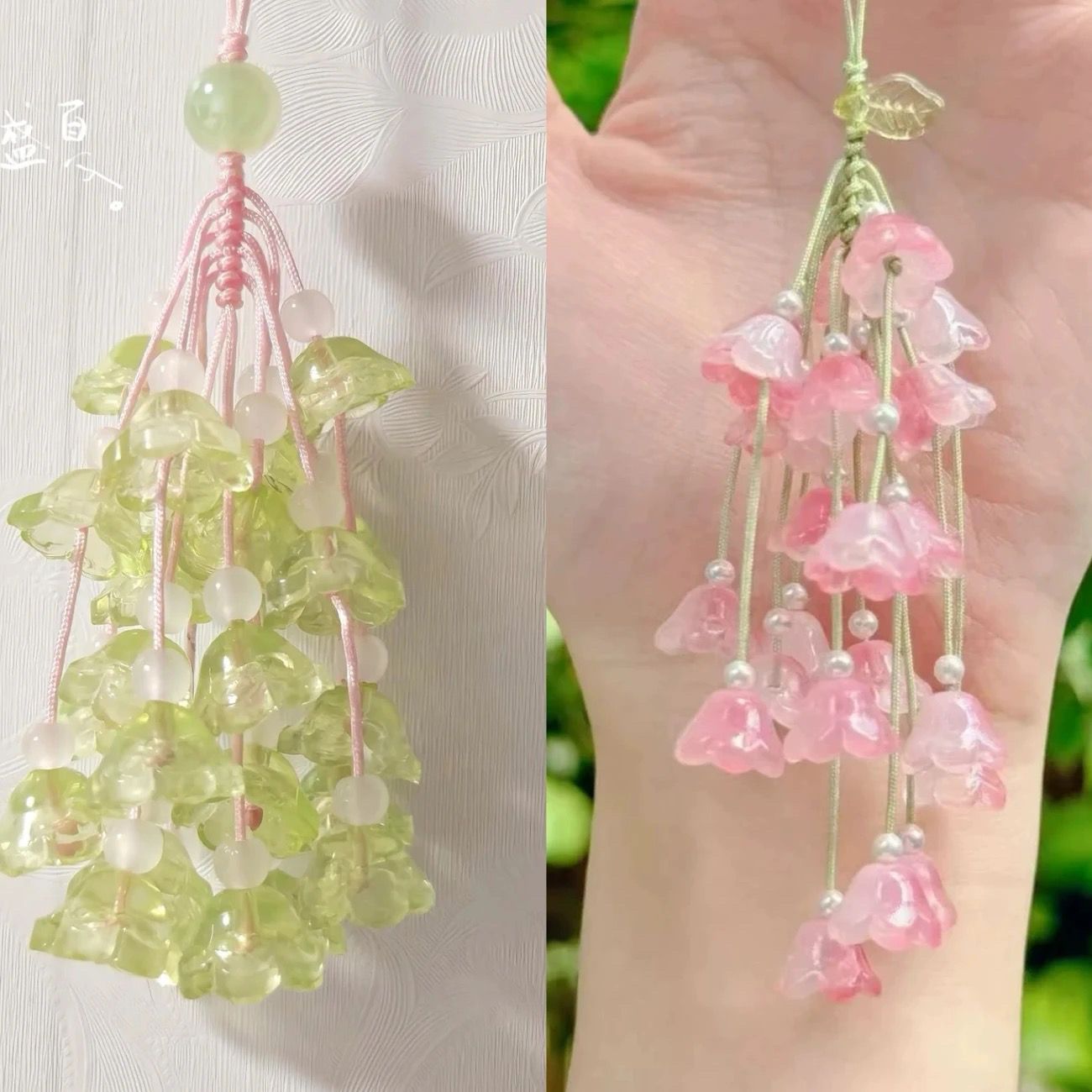 好运降铃铃兰兰花风铃古风粉白渐变挂件手机链中式钥匙链包挂