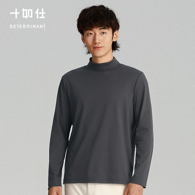 十如仕男女同款丝光长袖T恤半高领老钱风吸光发热内搭纯色打底T16
