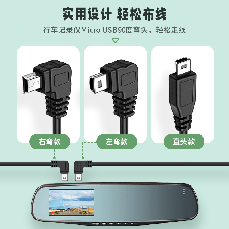 行车记录仪电源线改usb接口连接线供电转插头右车载左miniusb弯头T型适用于凌度360小米加长充电线
