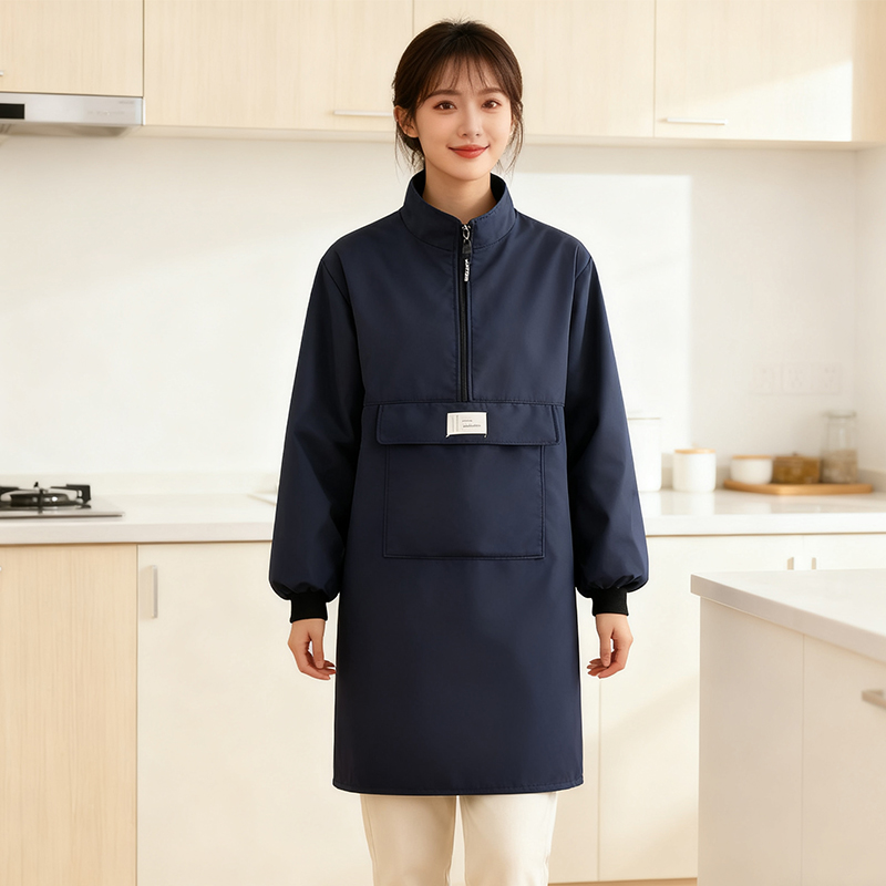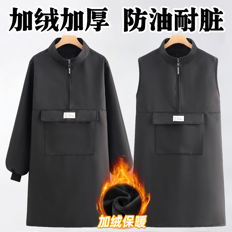 罩衣女新款防脏防水加绒工作服长袖女士干活大人厨房围裙防油黑色