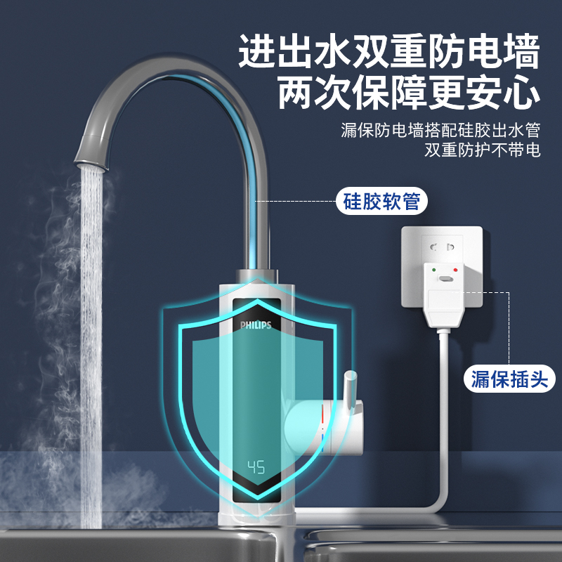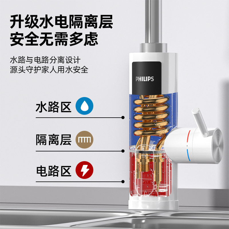 飞利浦电热水龙头即热式厨房冷热两用变频恒温速热家用洗碗加热器