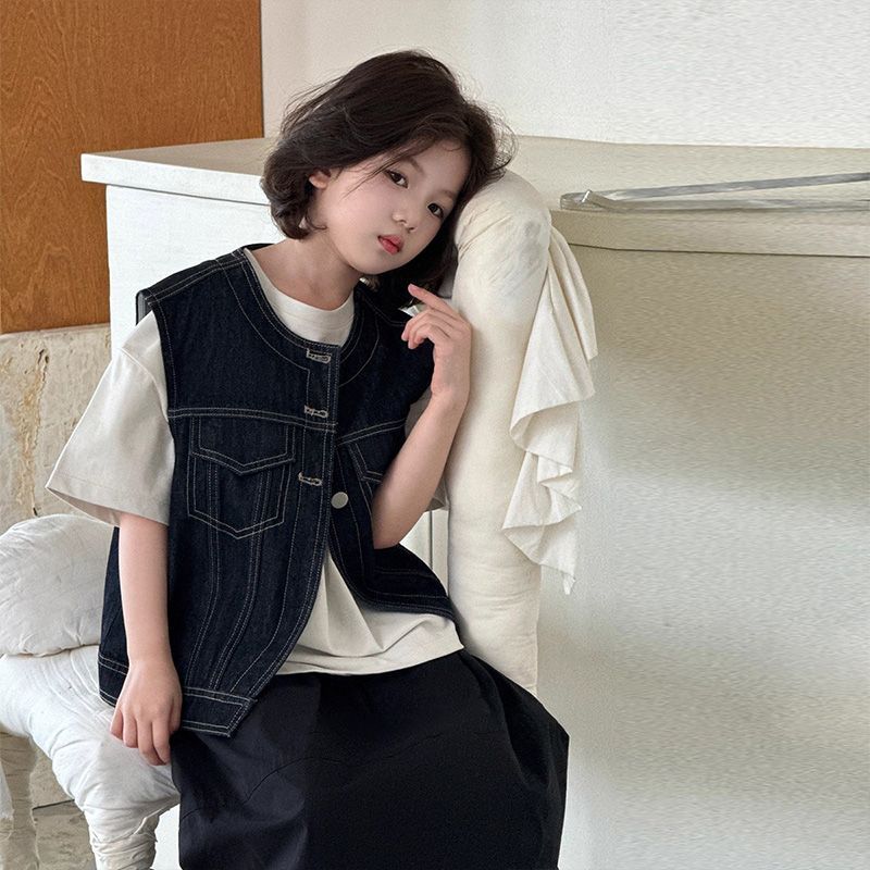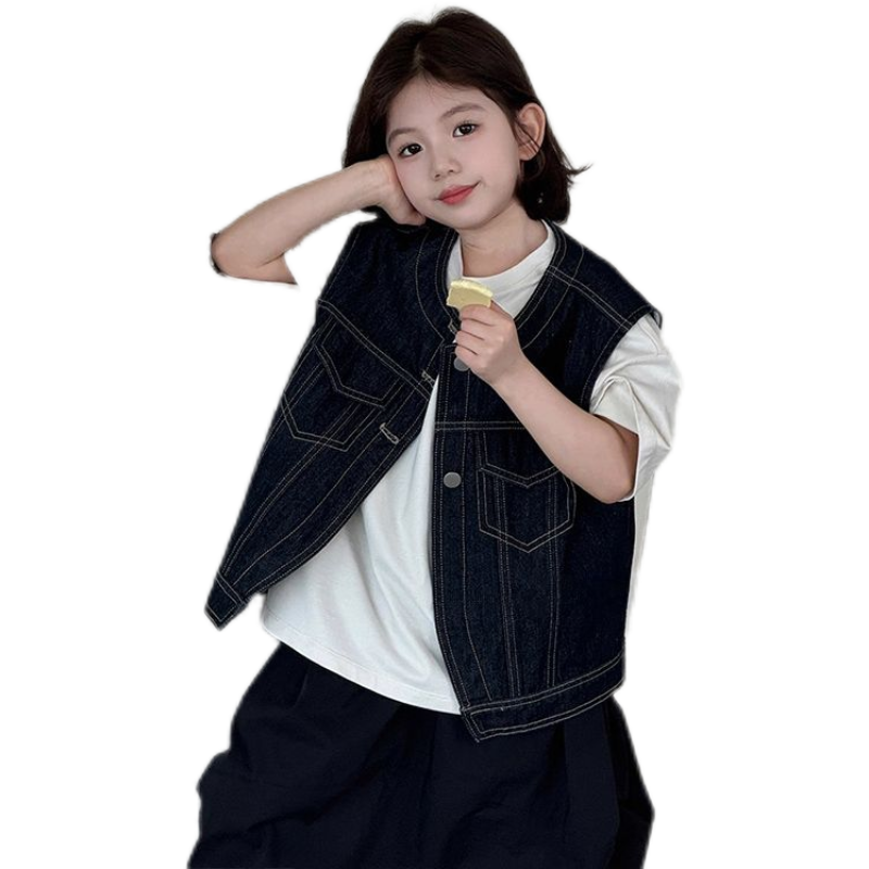 儿童马甲女童春秋韩版时尚牛仔夹克衫中大童复古原因休闲百搭背心