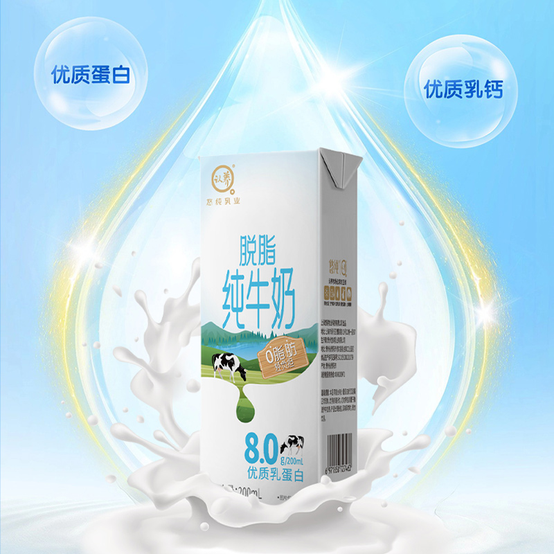 认养脱脂纯牛奶200ml*10/16/24盒4.0g蛋白质0脂肪营养早餐纯牛奶