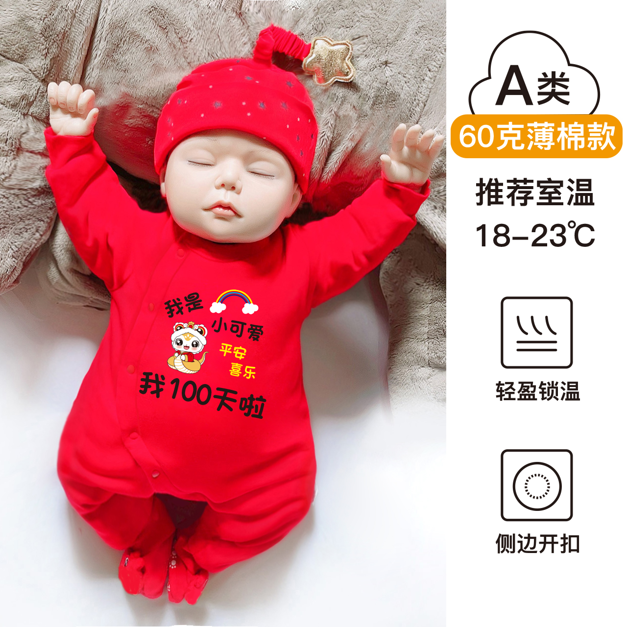 童泰款新生婴儿哈衣服蛇年男女宝宝公主满月百天春秋连体衣红色秋