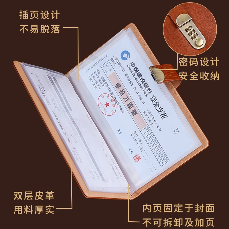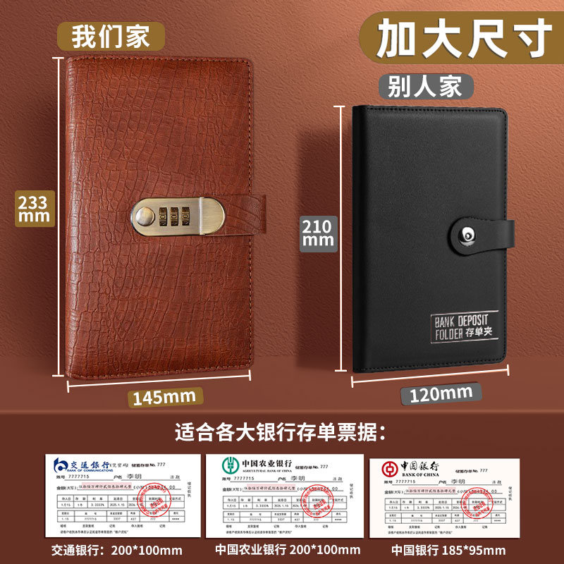 鳄鱼纹定期存单专用夹2025年新款密码锁收纳本支票收纳神器多功能防水票据银行大额纸大容量储蓄收集存款存折