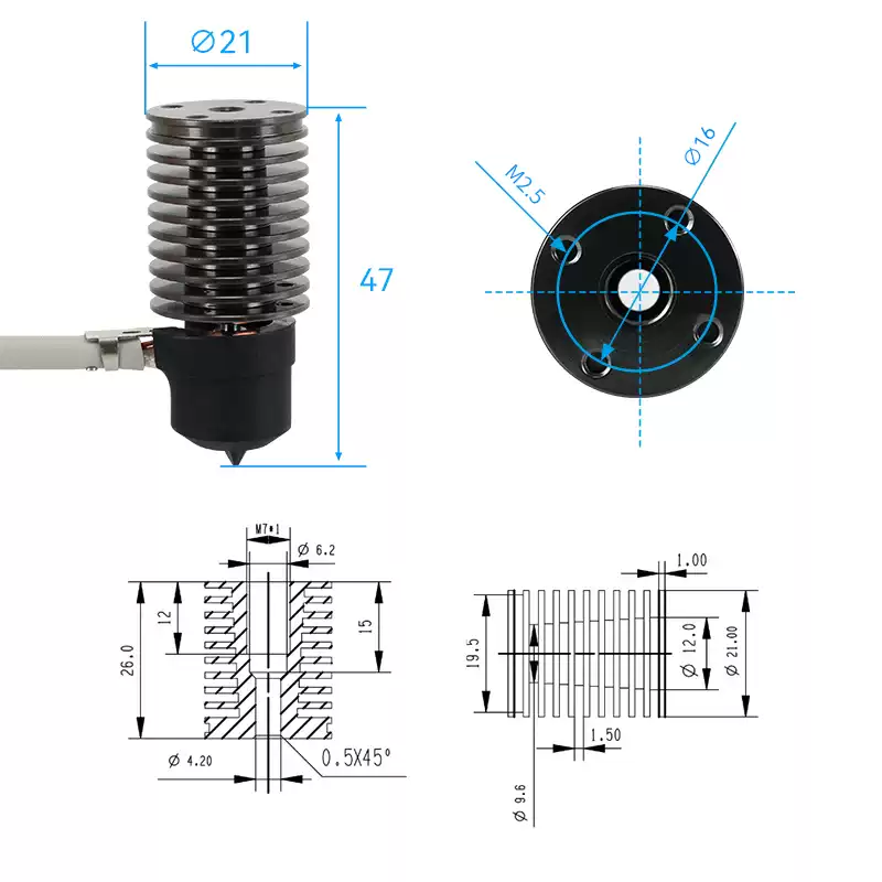 V6 VORON 2.4/0.2沃龙环形陶瓷挤出头热端组件三孔硬化钢喷嘴配件