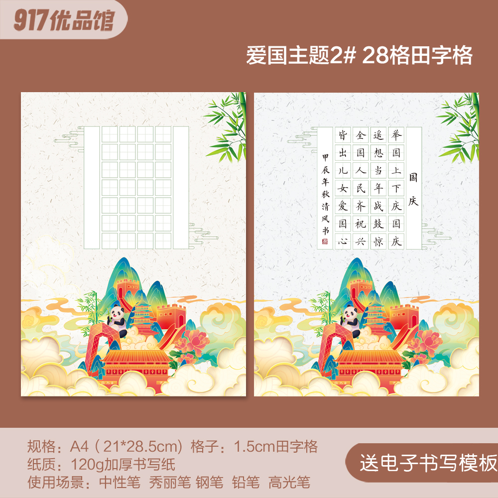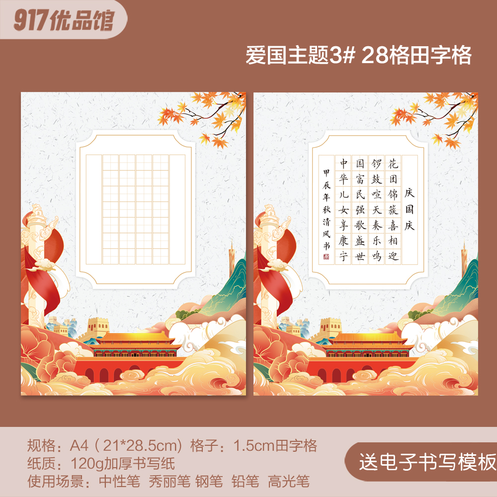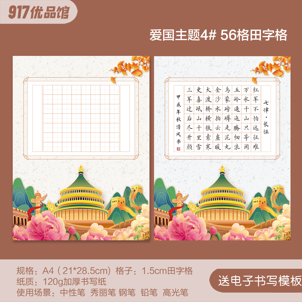 小学生硬笔书法作品纸国庆节红色爱国主题七律长征比赛专用A4田格