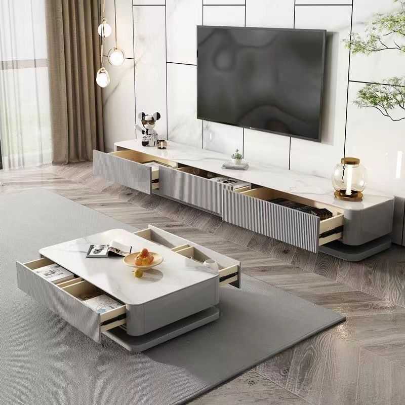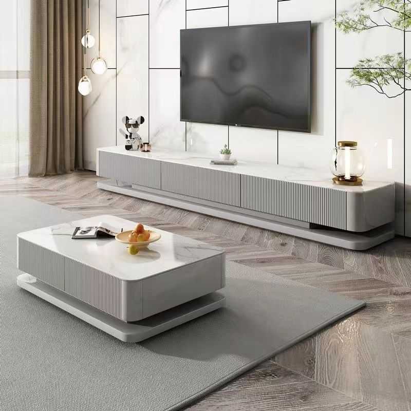 轻奢现代简约超长岩板电视柜茶几组合家用意式落地大户型北欧地柜