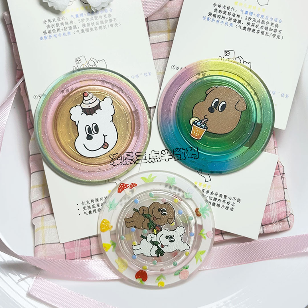夏日友达号1107吐舌小狗泡泡新款磁吸手机气囊支架圆啪嗒樱桃青柠