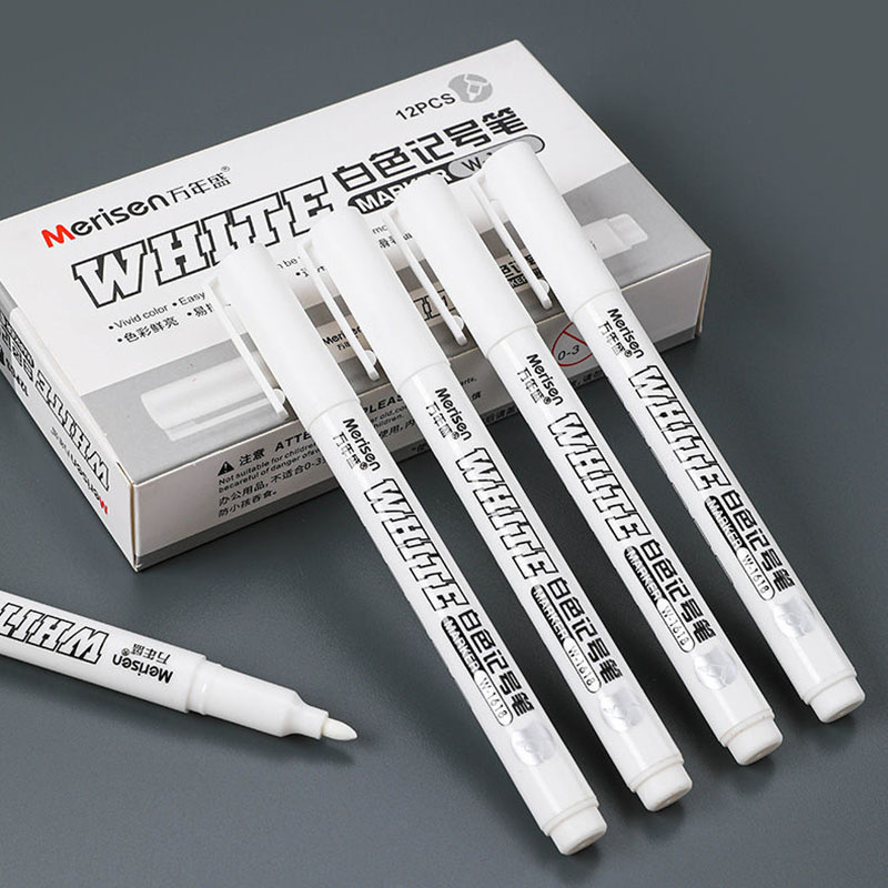 白色记号笔不掉色防水细头工业速干油性笔彩绘建筑笔不可擦白漆笔大容量