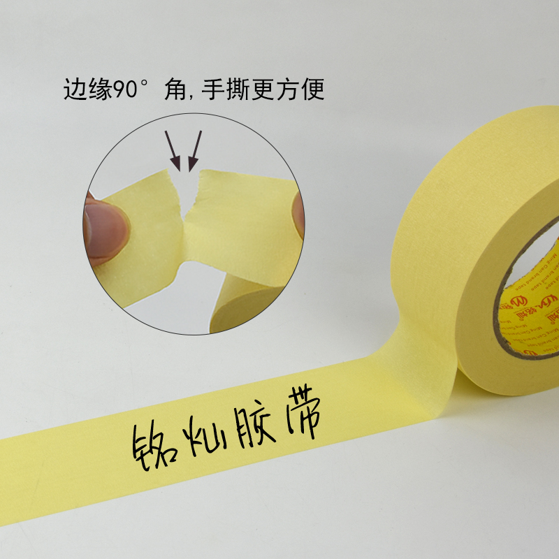 高粘黄色美纹h纸胶带汽车油漆喷漆遮蔽美缝耐高温真石漆分色纸胶