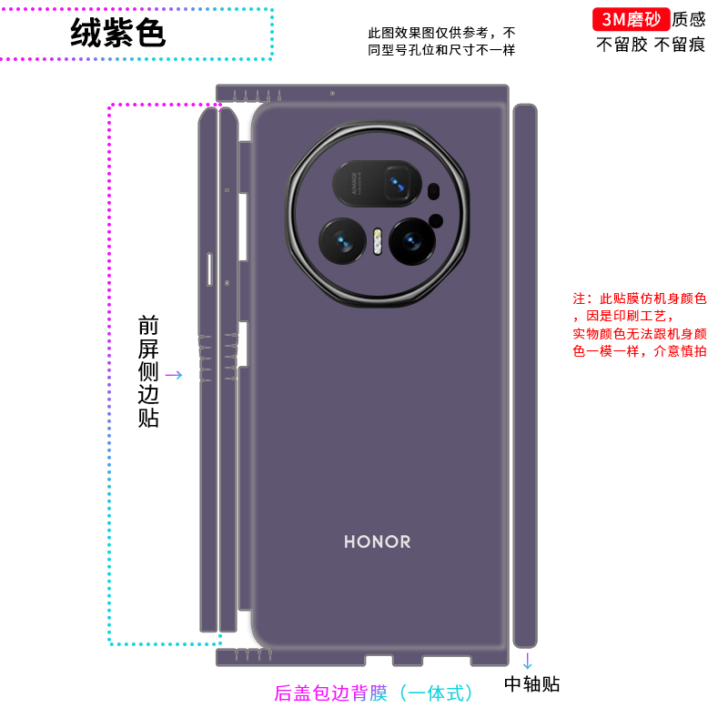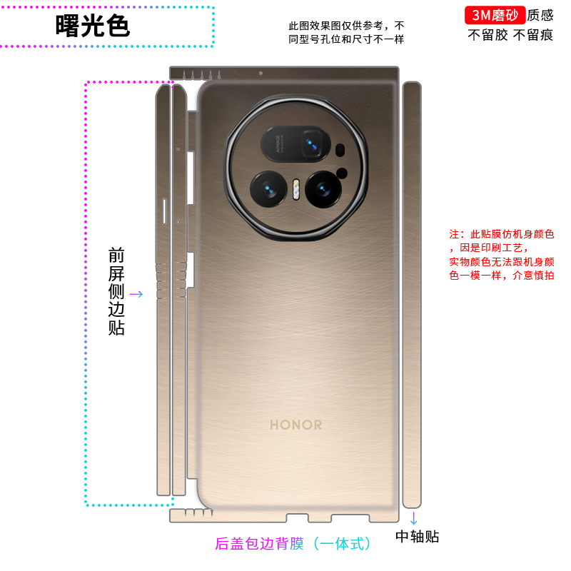 适用于荣耀magicV5/VS3全包边贴纸定制折叠手机V2 RSR中轴侧边后膜VS