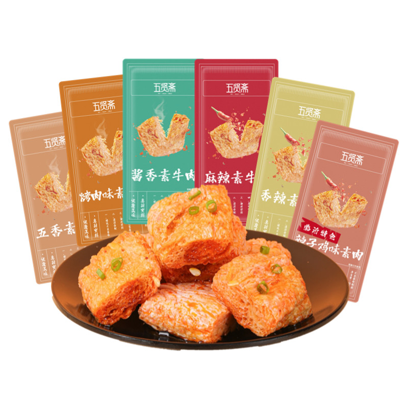 五贤斋手撕素肉零食休闲食品小吃豆干辣条素牛肉素牛排好吃的健康