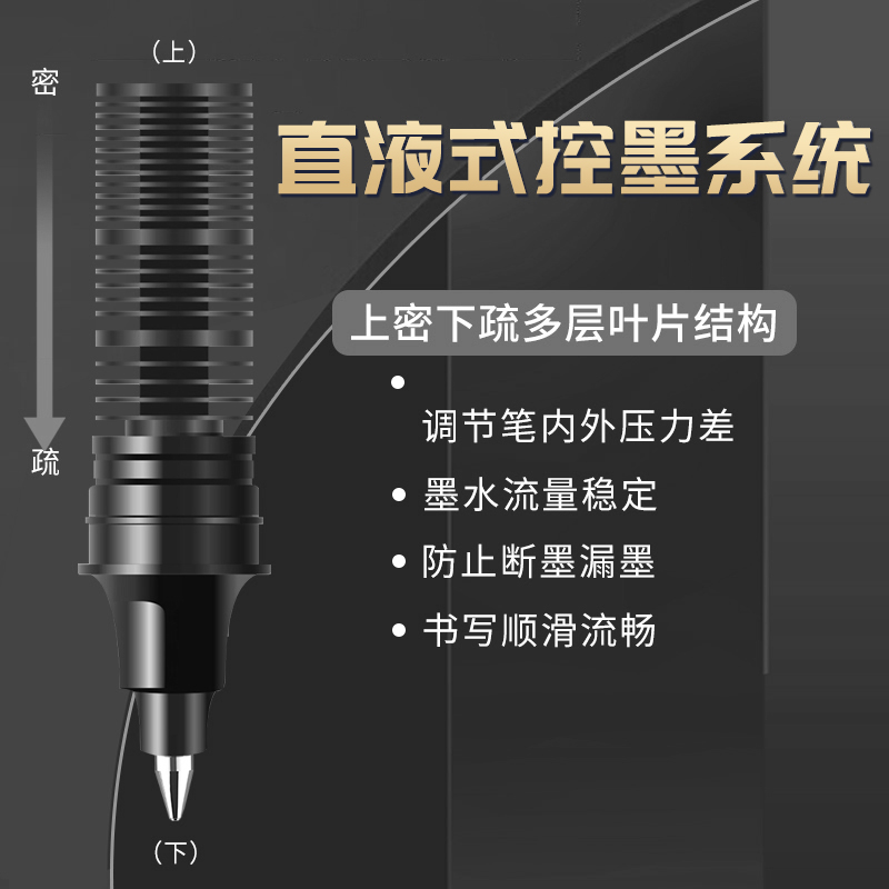 得力直液式走珠笔速干大容量直液笔0.5黑色中性笔学生用速干刷题笔水性笔直液笔圆珠笔商务办公简约风笔杆