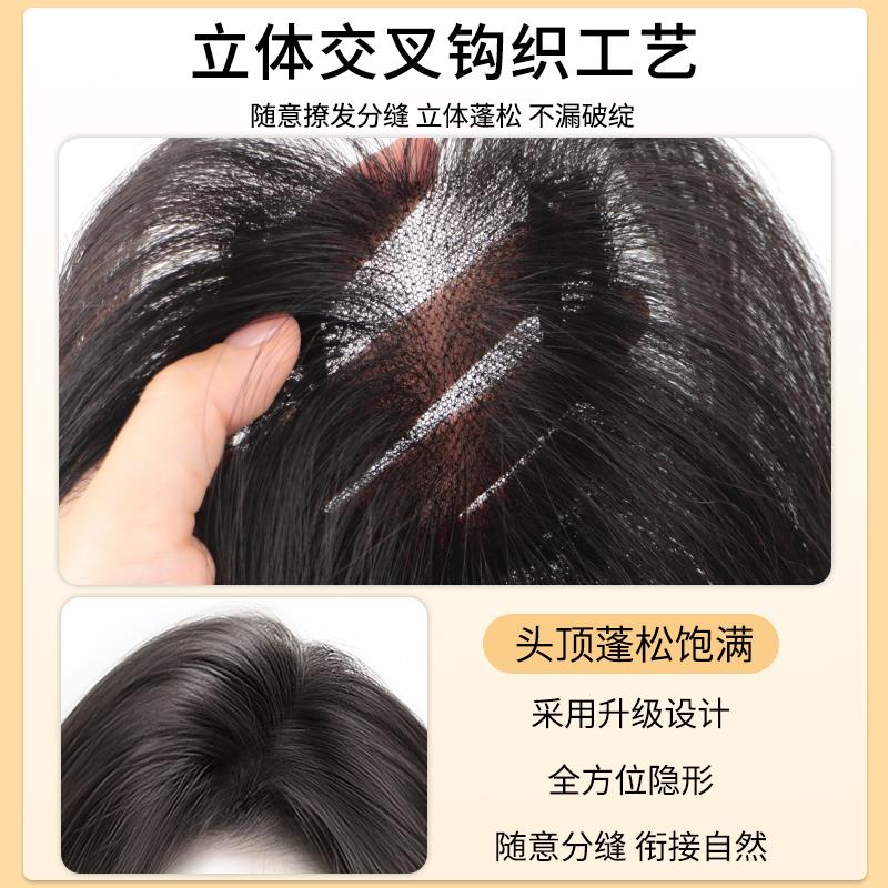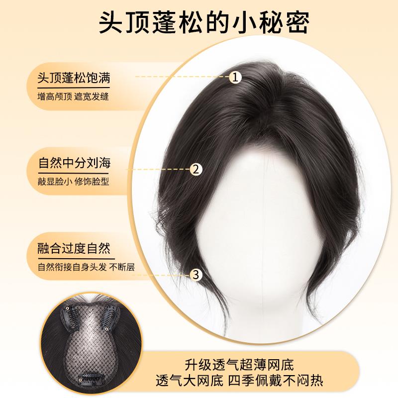 假发女片头顶补发增发量蓬松高颅顶遮白发八字空气刘海假发片法式