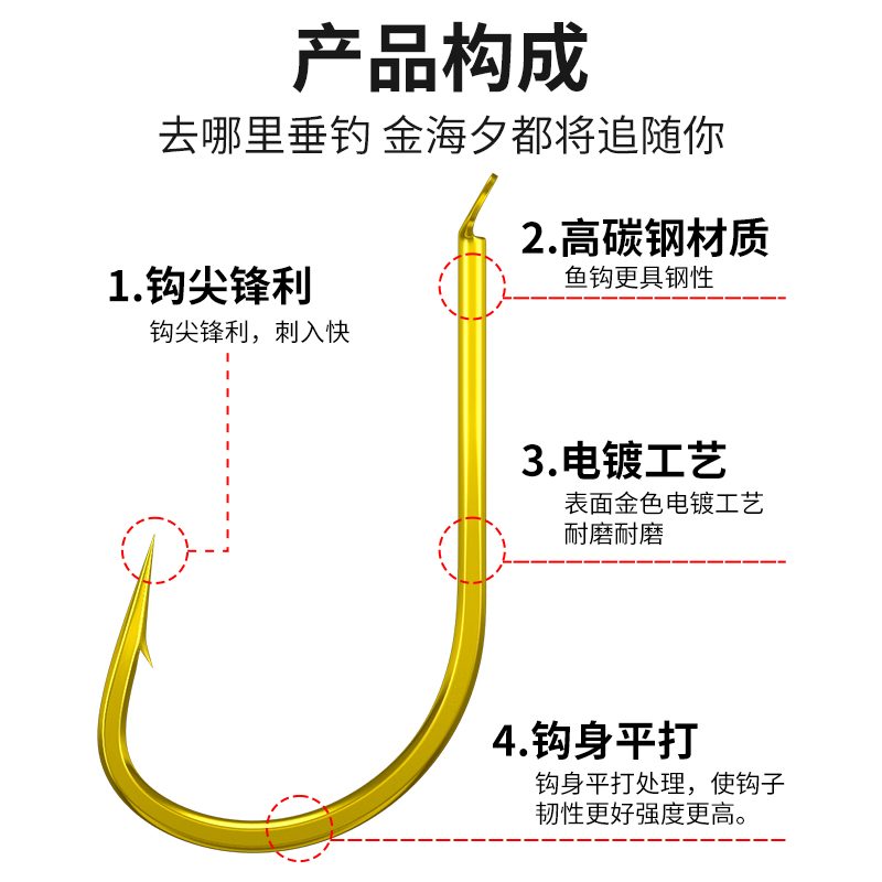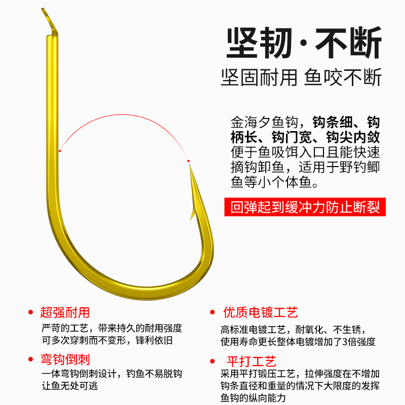 正品金海夕鱼钩翘嘴散装细条钩子海夕溪流有鲤鱼鲫鱼钩草鱼平打