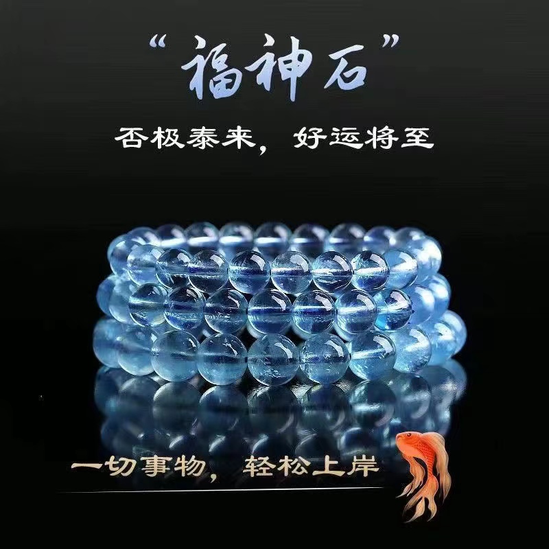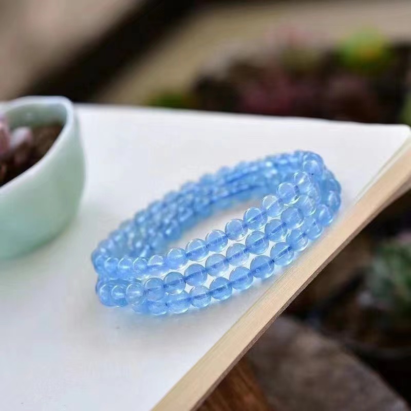晶饰缘纯海蓝宝手链多圈冰种手串三圈水晶蓝色转运蓝宝石珠宝深蓝