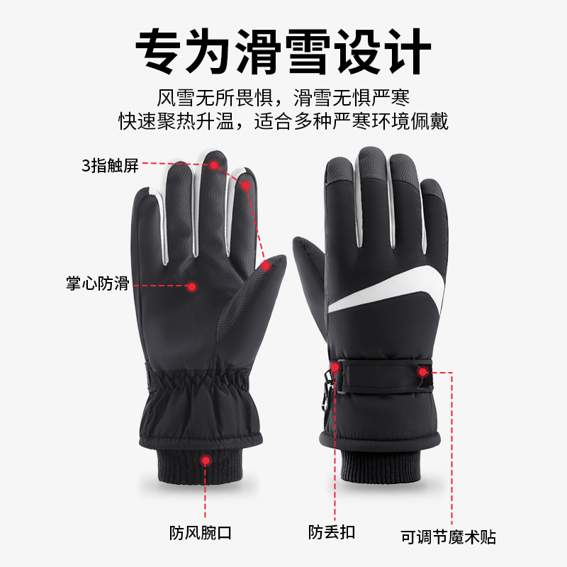 滑雪手套男士冬天骑行防寒防冻加绒加厚保暖电动车触屏手套女冬季