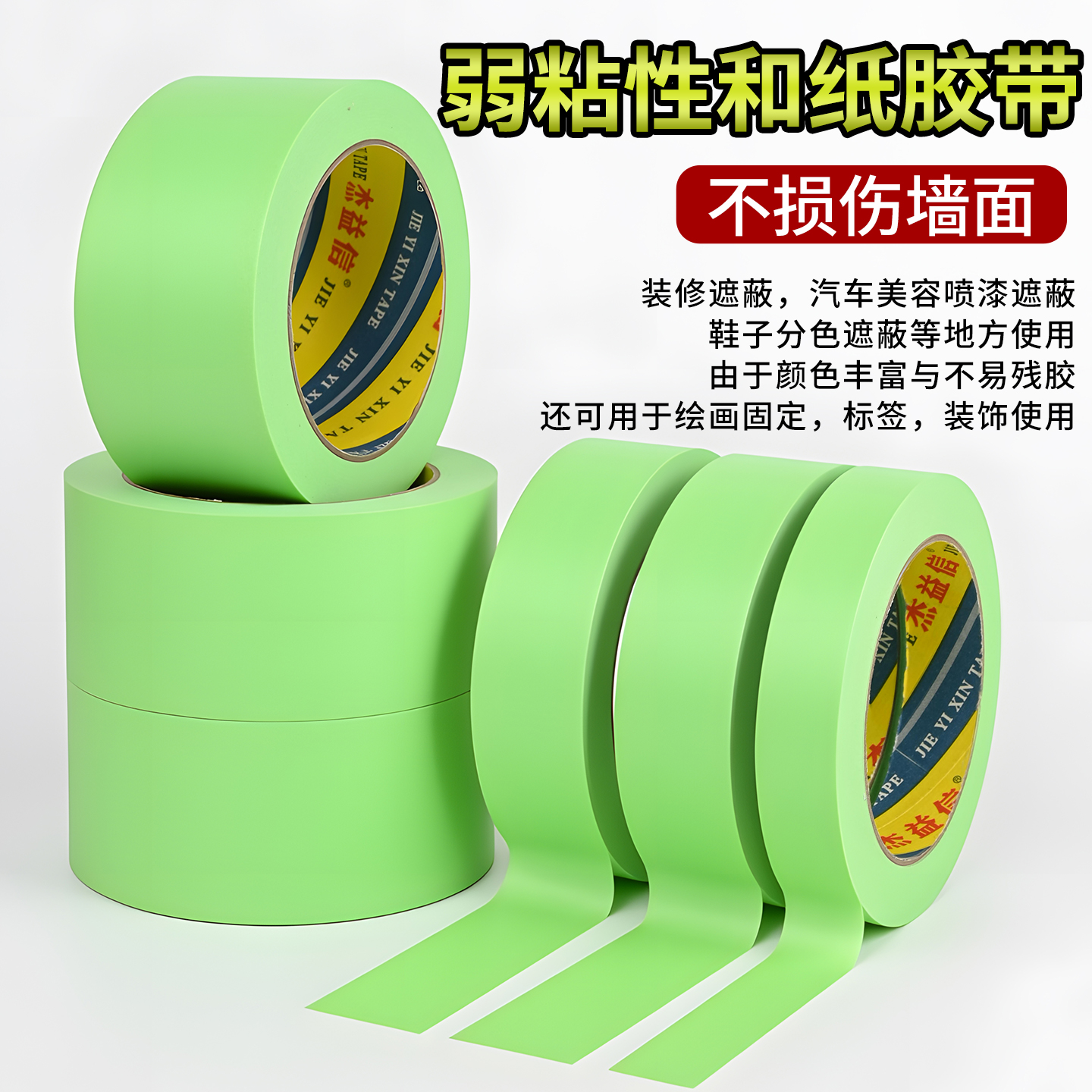 弱粘性绿色美纹纸和纸胶带刷墙面艺术漆乳胶漆分色纸低粘度性无痕手撕不粘底不伤墙喷漆遮蔽美纹纸弱胶美纹纸