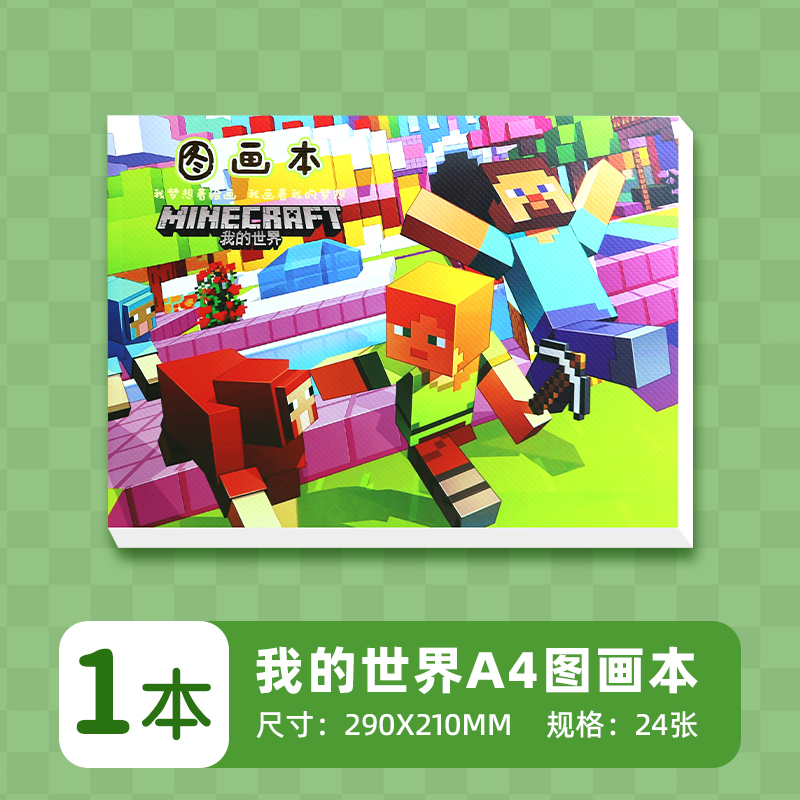 A4我的世界图画本可爱画画纸儿童空白图画本幼儿园美术画本带贴纸