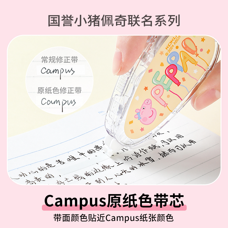 【小猪佩奇联名】日本KOKUYO国誉修正带原纸色涂改带大容量可换替芯Campus可爱卡通学生用顺滑改正带高颜值女