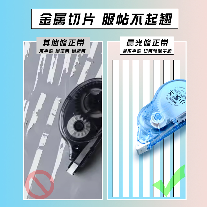 晨光小熨斗修正带学生用大容量实惠装30M20M小学生专用涂改带改正带修正贴高颜值金属切片服帖不翘初中生文具