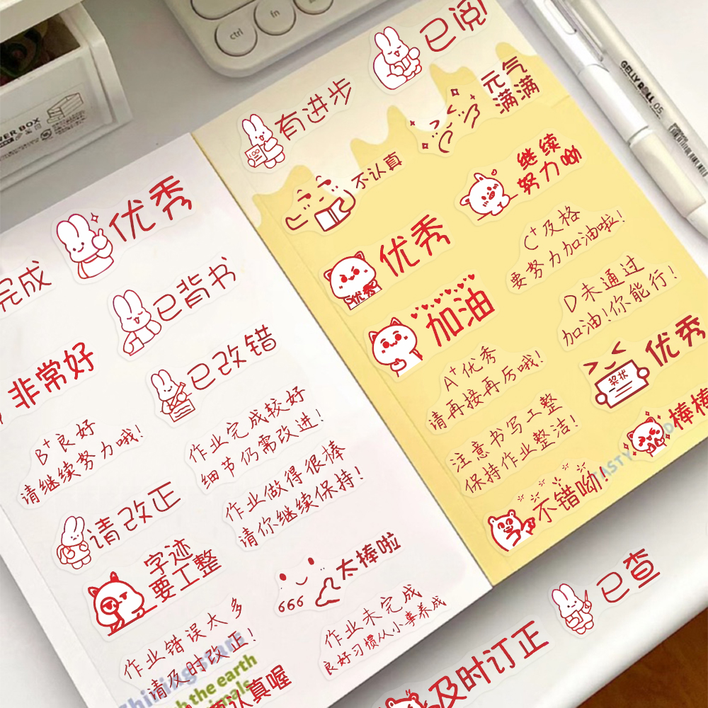 升级透明款】200张简约手绘作业批改教师专用好物学生夸夸贴自粘